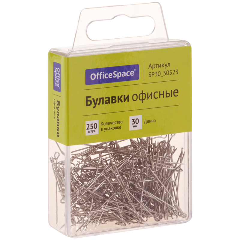 Булавки офисные OfficeSpace, 30мм, 250шт., пластик. коробка, европодвес 295448