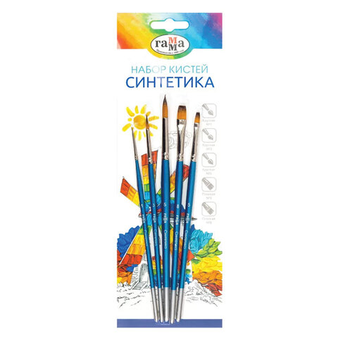 Кисти ГАММА, НАБОР 5 шт. (синтетическая круглая № 1, 3, 5, плоская № 5, 8), блистер, 280618.09.06 200795/281038
