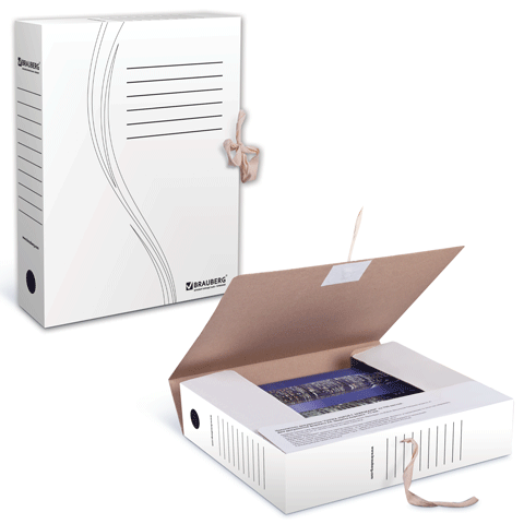 Короб архивный 75 мм с завязками белый, картон BRAUBERG 124850