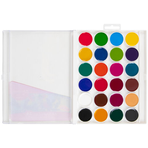 Акварельные краски BRAUBERG "МАГИЯ ЦВЕТА" идеально подходят для уроков детского творчества. Рисование способствует развитию образного мышления, глазомера, мелкой моторики рук, тонкого восприятия цветовой гаммы. 24 ярких насыщенных цвета отлично смешиваются между собой и позволяют создать множество оттенков, обеспечивают однородное окрашивание. Краски быстро высыхают и не портятся со временем. Безопасны для детей, нетоксичны. Выпускаются в пластиковом пенале с европодвесом, прозрачной крышкой, кюветами круглой формы и отделением для кисточки. Упаковка обладает компактными размерами и легким весом.