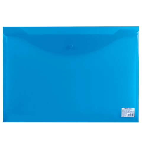 Папка-конверт с кнопкой А3, прозрачная синяя BRAUBERG 224034