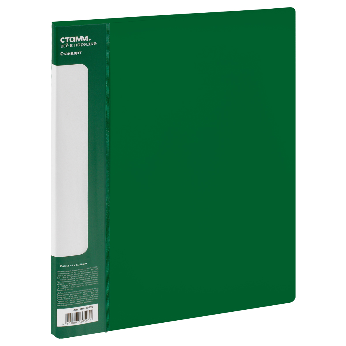 Папка на 2 кольцах СТАММ "Стандарт" А4, 40мм, 700мкм, пластик, зеленая 355281