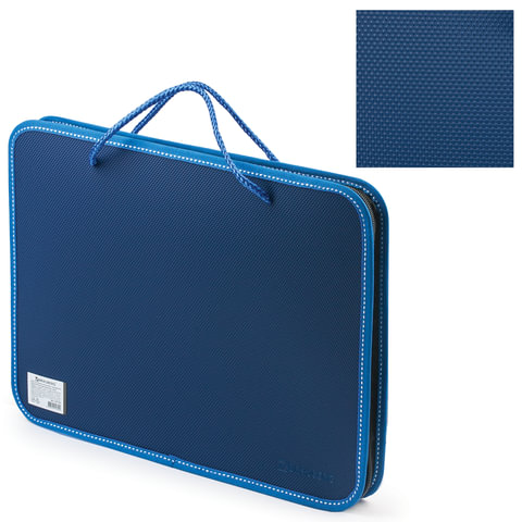 Папка на молнии пластиковая с ручками BRAUBERG А4, 350*270*45 мм, фактура бисер, синяя, 225163