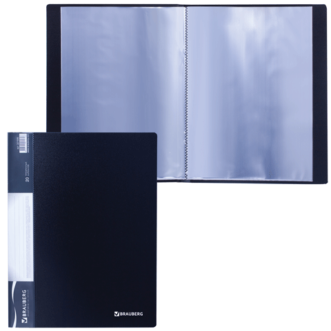 Папка с 20 вкладышами чёрная BRAUBERG "Стандарт" 221596