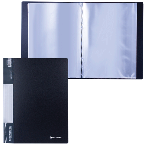 Папка с 30 вкладышами чёрная BRAUBERG "Стандарт" 221600