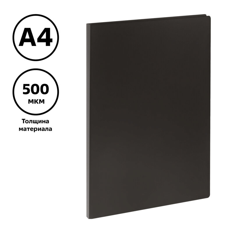 Папка с боковым зажимом СТАММ А4, 14мм, 500мкм, пластик, черная, ММ-32216, 343153