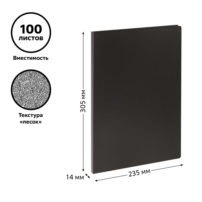Папка с зажимом «СТАММ» предназначена для хранения бумаг формата А4. Изготовлена из качественного полипропилена. Размер папки – 235*305 мм. Бумагам, вложенным в папку, не требуется перфорация дыроколом. Ширина корешка 14 мм позволяет вмещать в папку до 100 листов. Боковой зажим надежно фиксирует документы. Толщина обложки – 500 мкм. Цвет изделия – чёрный. • Размер: 235*305 мм; • Толщина материала: 500 мкм; • Формат: А4; • Вместимость: 100 листов; • Цвет: чёрный; • Ширина корешка: 14 мм.