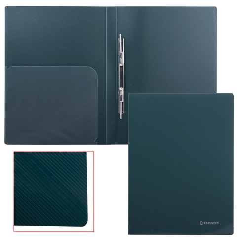 Папка с металлическим скоросшивателем и внутренним карманом тёмно-зеленая BRAUBERG "Диагональ" 221354