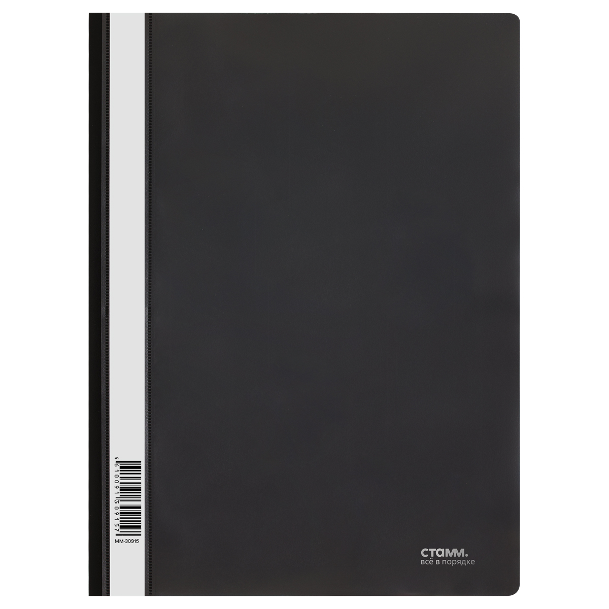 Папка-скоросшиватель «СТАММ» формата А4 предназначена для транспортировки, хранения и систематизации документов. Изделие изготовлено из качественного полипропилена толщиной 180 мкм. Изделие размером 230*310 мм имеет черный цвет с прозрачным верхним листом. Вместимость – до 100 листов. Папка защищает документы от пыли, влаги и прочих повреждений.