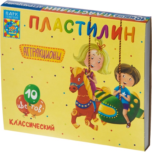 Пластилин классический Аттракционы набор 10 цв, 200 г, со стеком,ПЛ-К10-200 1674092