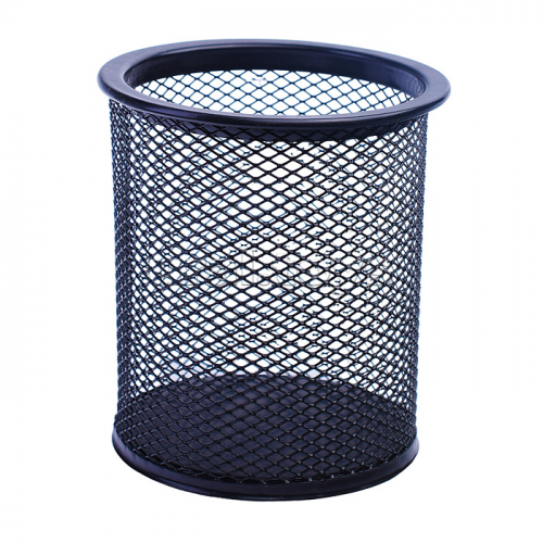 Подставка для пишущих принадлежностей 9,5x9,5x10,5 см, круглый, сетчатая металлическая, черная
