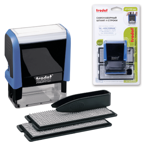 Штамп самонаб. 2-стр. оттиск 70*10мм синий без рамки TRODAT 4916DB, корп. синий, КАССА В КОМПЛЕКТЕ 235558