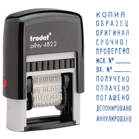 Изготовлен на основе оснастки GRM40. Прозрачное окошко обеспечивает точное позиционирование оттиска. Специальные держатели позволяют не пачкать руки при смене подушки. Возможность нанесения логотипа на лицевую поверхность.