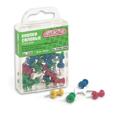 Силовые кнопки-гвоздики цветные, 30 штук ATTACHE 55365