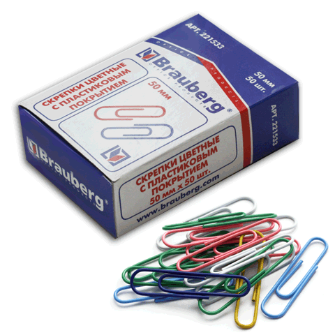 Скрепки 50 мм цветные 50 штук BRAUBERG 221533