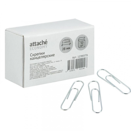 Скрепки Attache Economy незаменимы при работе в офисе или дома, когда нужно соединить несколько бумаг, например, все листы договора или другие важные документы. Металлические с цветным покрытием из пластикового полимера. Имеют закругленную форму, что позволяет надежно скреплять документы. Разноцветные. Длина 28 мм. В упаковке 50 скрепок. Товар относится к ценовому сегменту "суперэконом". Имеет упрощенные характеристики и более простую упаковку. Отвечает основным требованиям потребления.