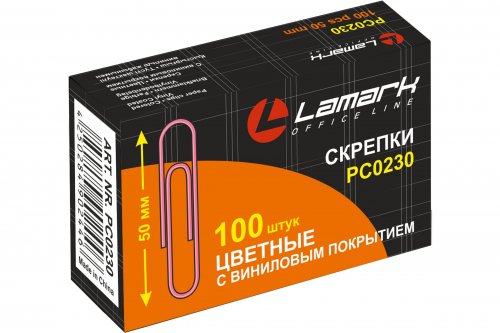 Скрепки Lamark никелированные скругленные, размер 28 мм, 100 штук в цветной картонной упаковке.