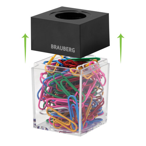 Скрепочница магнитная BRAUBERG, 100 цветных скрепок 28 мм, прозрачный корпус, 228401