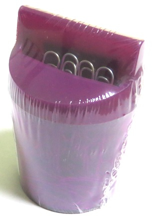 Удобный настольный контейнер эргономичной формы, предназначенный для хранения скрепок на рабочей поверхности. Вмещает до 100 скрепок. Материал: полистирол.