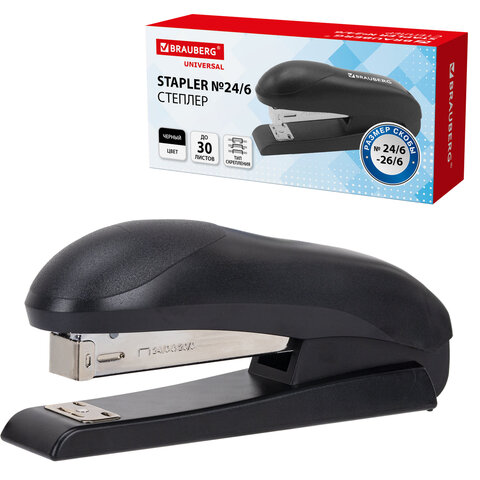 Степлер №24/6, №26/6 BRAUBERG "UNIVERSAL", до 30 листов, на 100 скоб, черный, 272716