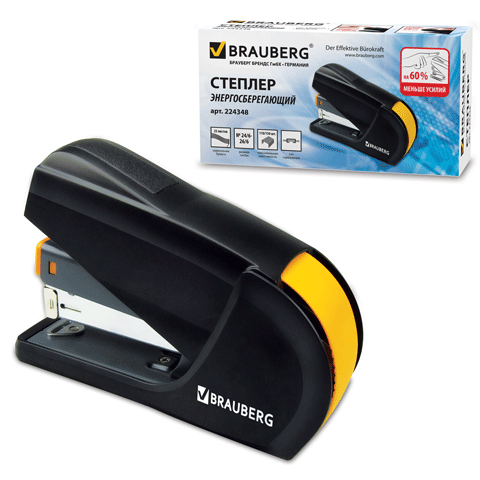 Энергосберегающий настольный степлер BRAUBERG "Easy Press" № 24/6, 26/6 предназначен для надежного и качественного СКРЕПЛЕНИЯ БЕЗ УСИЛИЙ документов в офисе и дома.