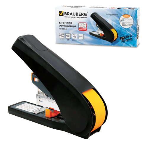 Мощный степлер BRAUBERG "Easy Press" предназначен для работы с большим объемом документов. При работе со степлером требуется прикладывать на 60% меньше усилий по сравнению с обычными моделями.