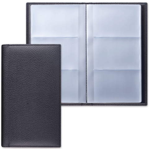 Визитница настольная InFolio Grand выполнена из натуральной кожи коньячного цвета. Изделие закрывается на цупфер с магнитной кнопкой. Внутри двухрядный блок из пленки ПВХ для хранения визиток и магнитных карт на 72 визитки/карты. Размер: 115х125х20 мм.