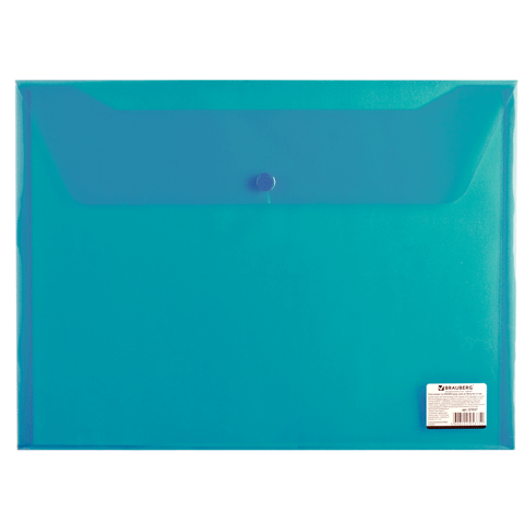 Папка-конверт с кнопкой А4, непрозрачная синяя BRAUBERG 221362