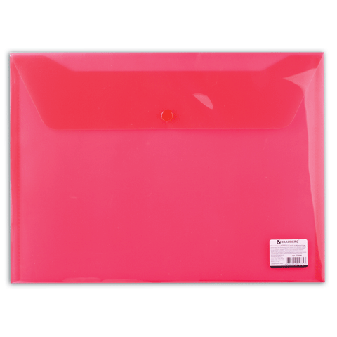 Папка-конверт с кнопкой А4, прозрачная красная BRAUBERG 221636
