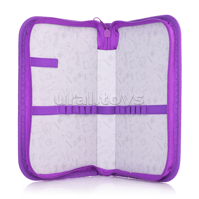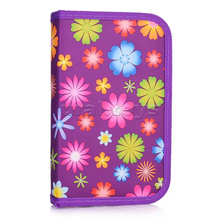 Пенал 1-секц, большой "Цветы" фиолетовый