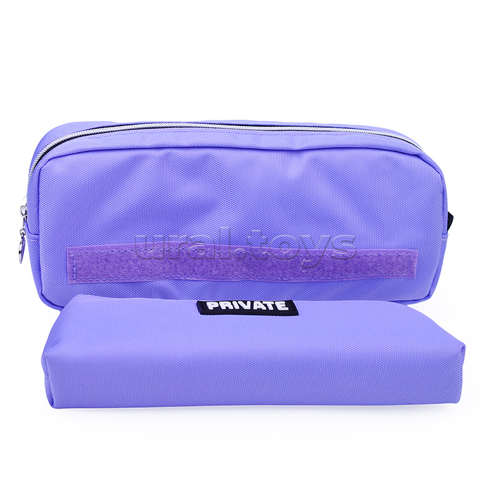 Пенал "Private" 21x9x4 см, прямоугольный для 60 предметов, текстильный, на молнии, внешний съемный прямоугольный для 60 предметов пенал 20x6x3 см, крепится на липучке, с каучуковой аппликацией, пастельный сиреневый