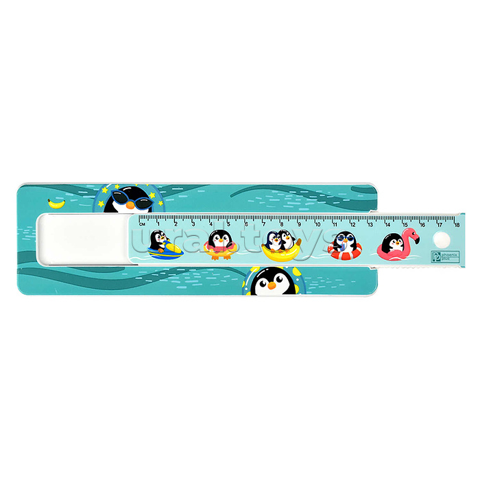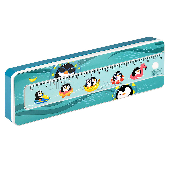 Пенал школьный в комплекте с линейкой "Пингины" 21х6.4х2.5 см, АБС-пластик,