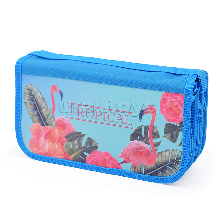 Пенал трехсекционный большой 190/105 "Фламинго в цветах 2021"
