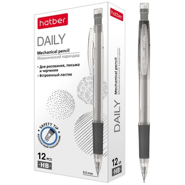 Канцелярские товары производителя завоевали широкую популярность, благодаря высокому качеству и ценовой лояльности. Чернографитный механический карандаш в цветном круглом корпусе подходит для графического рисунка, эскизов, чертежных работ, а также заметок и записей. Подходит как для офисного и домашнего использования, так и для рисования и письма в детских и прочих учреждениях. Карандаш обладает прочным твердо-мягким грифелем с маркировкой HB. Диаметр грифеля составляет 0,5 мм. Корпус выполнен из ударопрочного пластика. Стержень подается с кнопки.