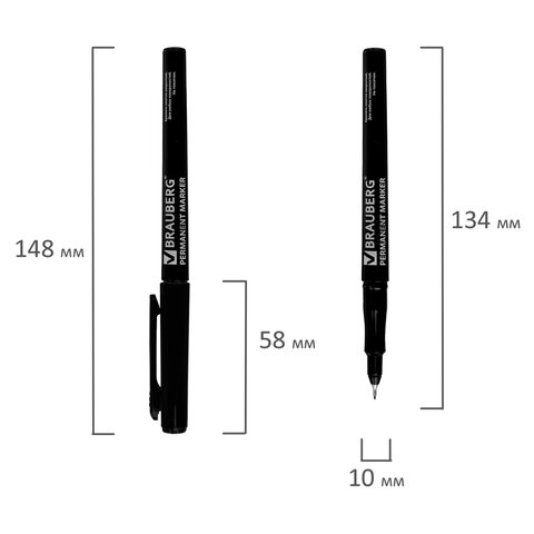 Маркер перманентный BRAUBERG "Super Slim", ЧЕРНЫЙ, тонкий металлический наконечник, 0,8 мм, 151632