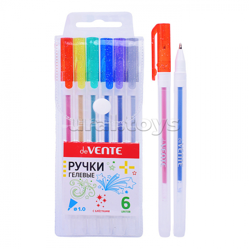 Набор ручек гелевых "Hit Glitter" 6 цветов с блестками, d=1 мм, прозрачно-матовый корпус.