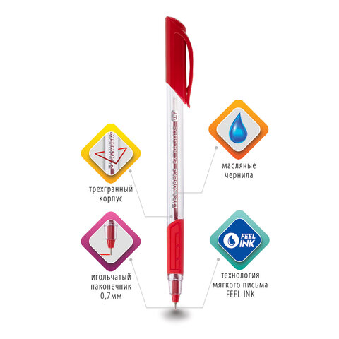 Ручка шариковая масляная BRAUBERG "Extra Glide GT", КРАСНАЯ, трехгранная, узел 0,7 мм, линия письма 0,35 мм, 142920