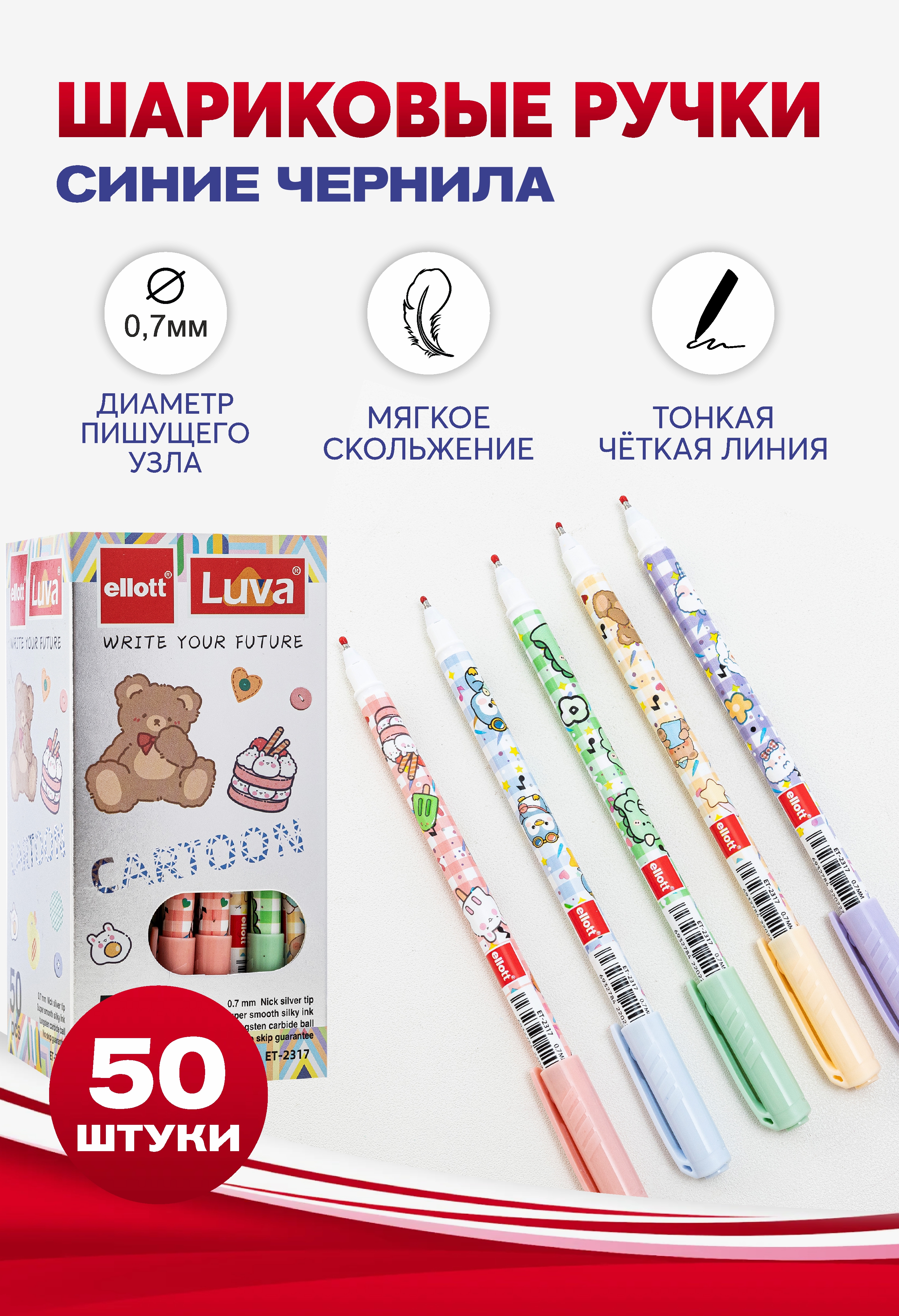 Ручка шариковая офисная Ellott Cartoon 50 шт. 0.7 мм синяя