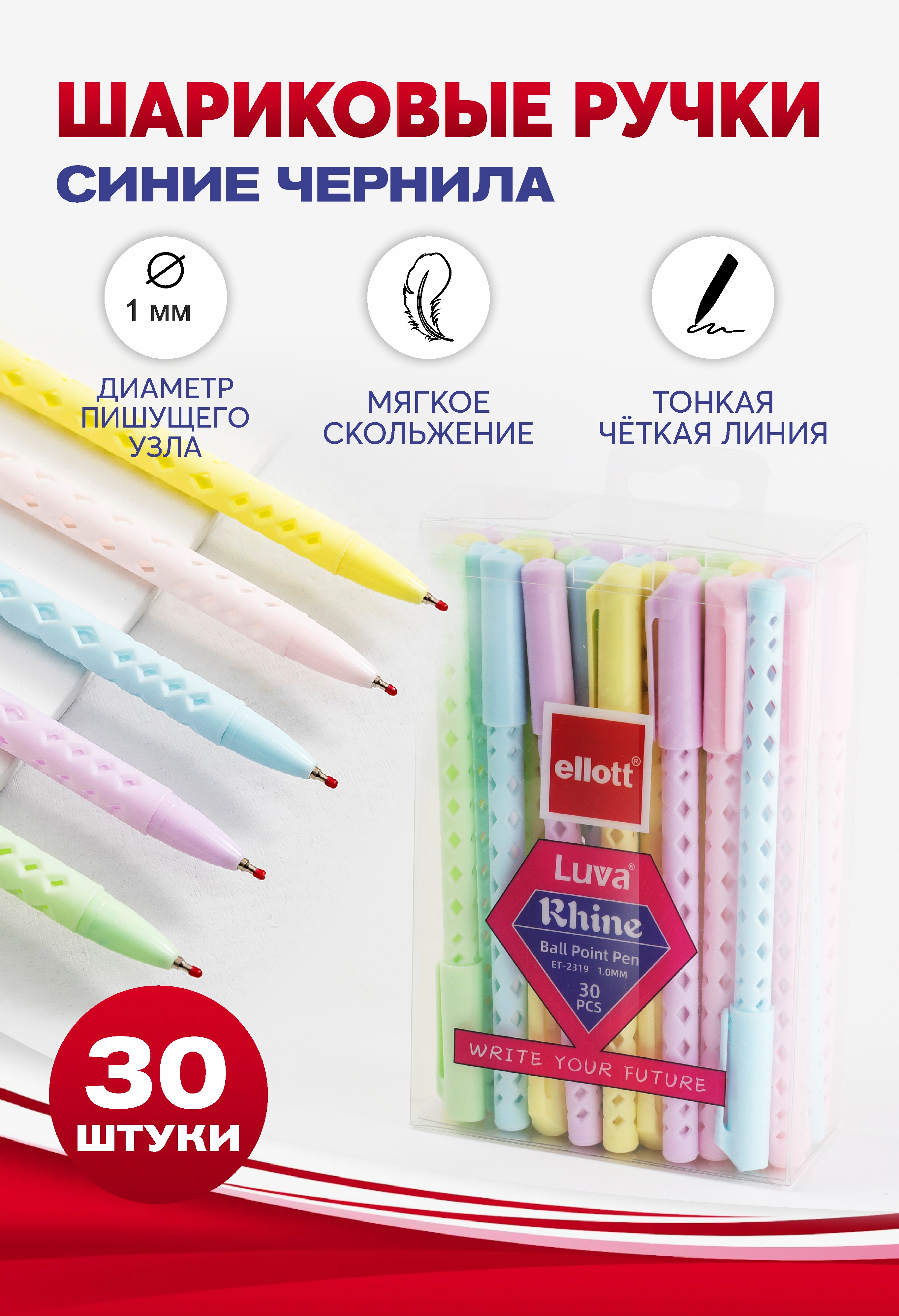 Ручки шариковые синие Ellott, набор 30 штук - это идеальное решение для повседневных нужд. В набор входят 30 шариковых ручек синих, каждая из которых обеспечивает ровную линию толщиной 1 мм. Незаменимый помощник в школе и офисе, этот набор ручек шариковых синих станет вашим надежным спутником при написании записей, заметок и выполнении домашних заданий.
