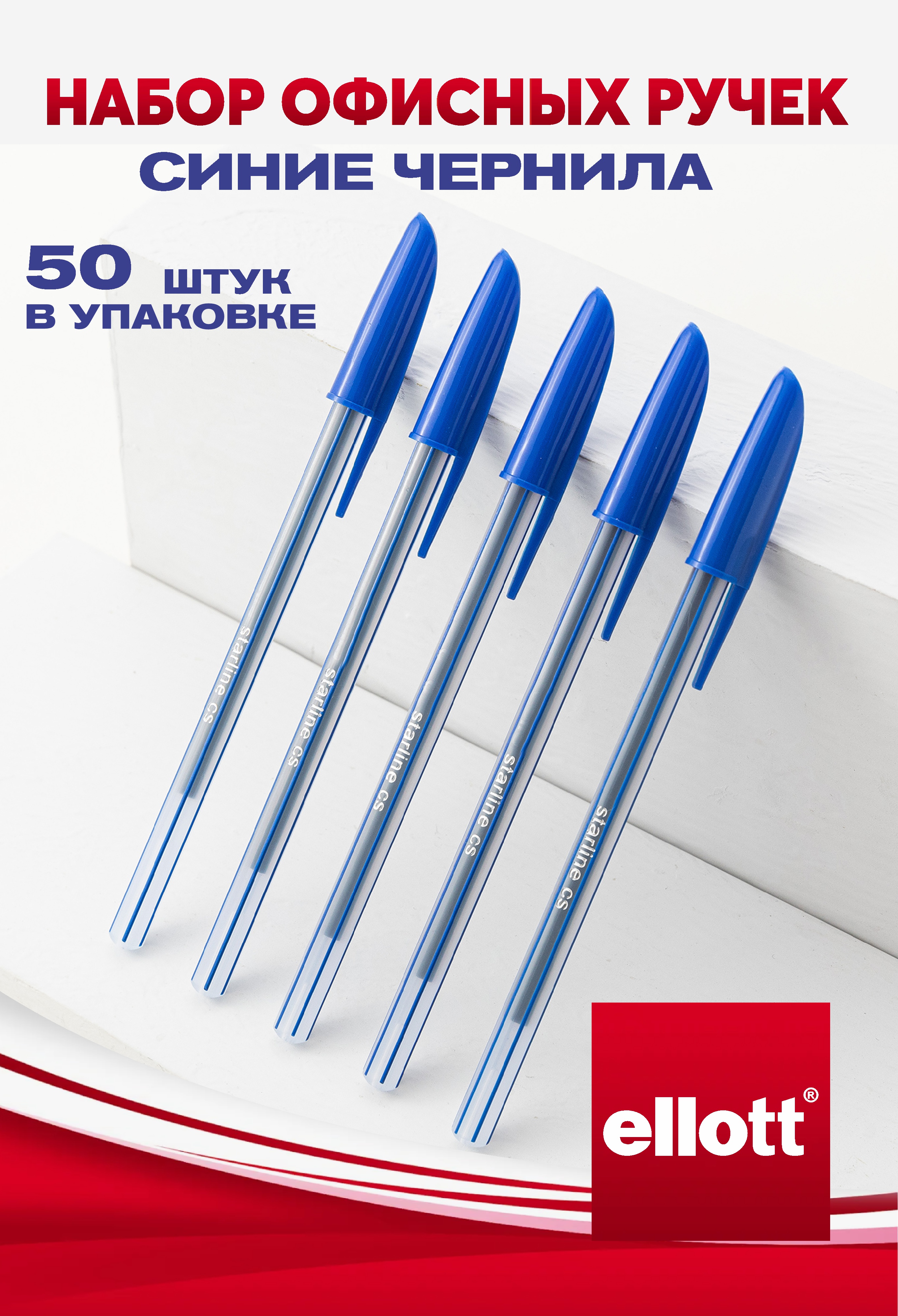 Ручка шариковая офисная Ellott Starline CS 50 шт. 0.7 мм синяя