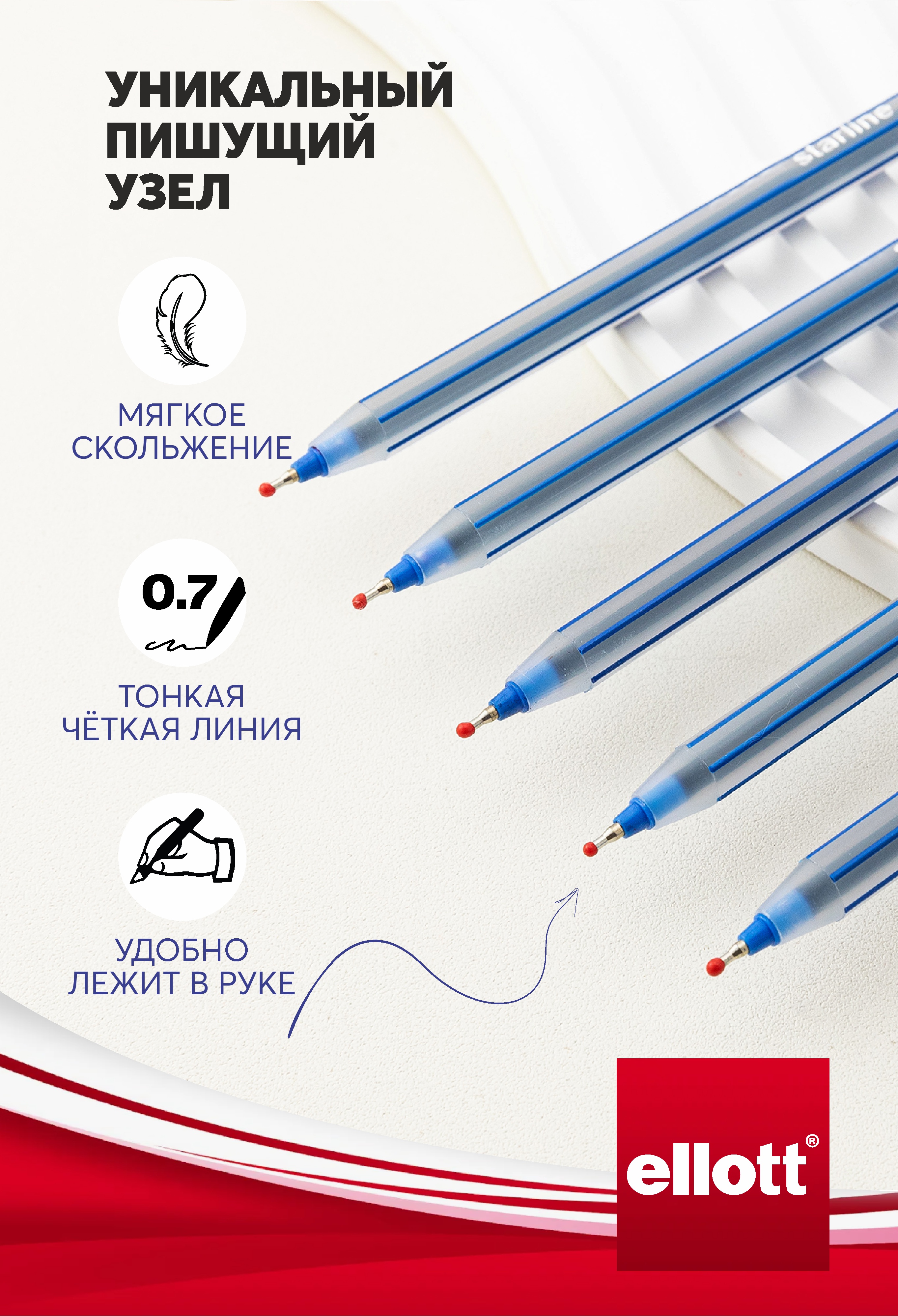 Ручки шариковые синие Ellott особенно подойдут для школьников, студентов и офисных работников, которым важно всегда иметь под рукой надежное средство для письма. Компактная упаковка набора позволяет удобно хранить его в рюкзаке, сумке или на рабочем столе, не занимая много места.