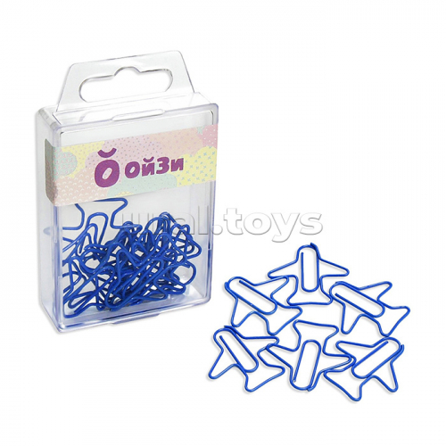 Скрепки фигурные самолет L28 мм, 12 шт.,пластик.коробка, европодвес синие