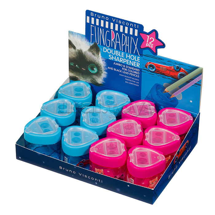 Точилка треугольная с контейнером, 2 отверстия "Funsharp" (2 цвета)