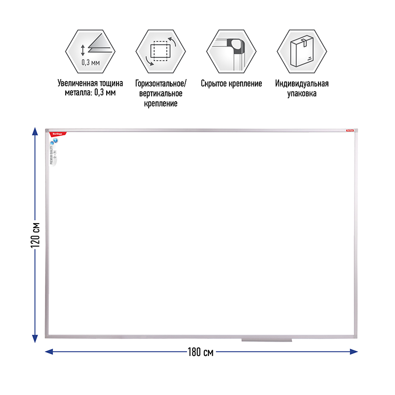Доска магнитно-маркерная Berlingo Premium качества, 120*180 мм. Увеличеннная толщина магнитно-маркерной поверхности, ДВП основа. Полочка для аксессуаров и комплект креплений - в комплекте. Индивидульно упакована в пленку, в коробке - 1 штука. Гарантия на магнитно-маркерную поверхность - 10 лет.