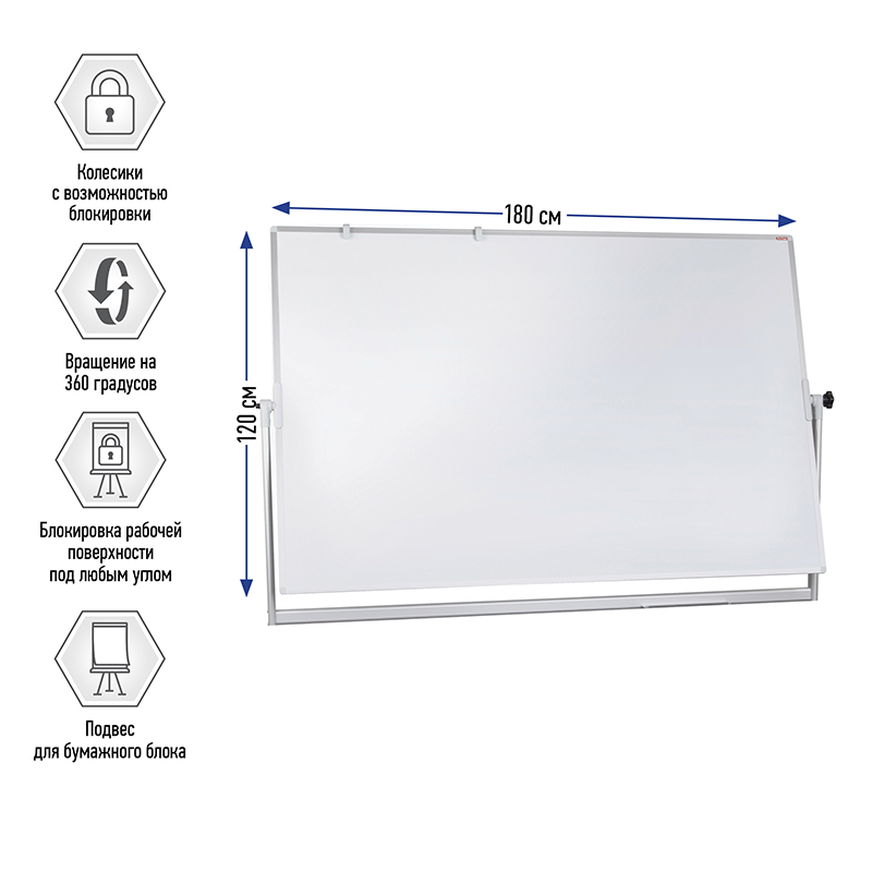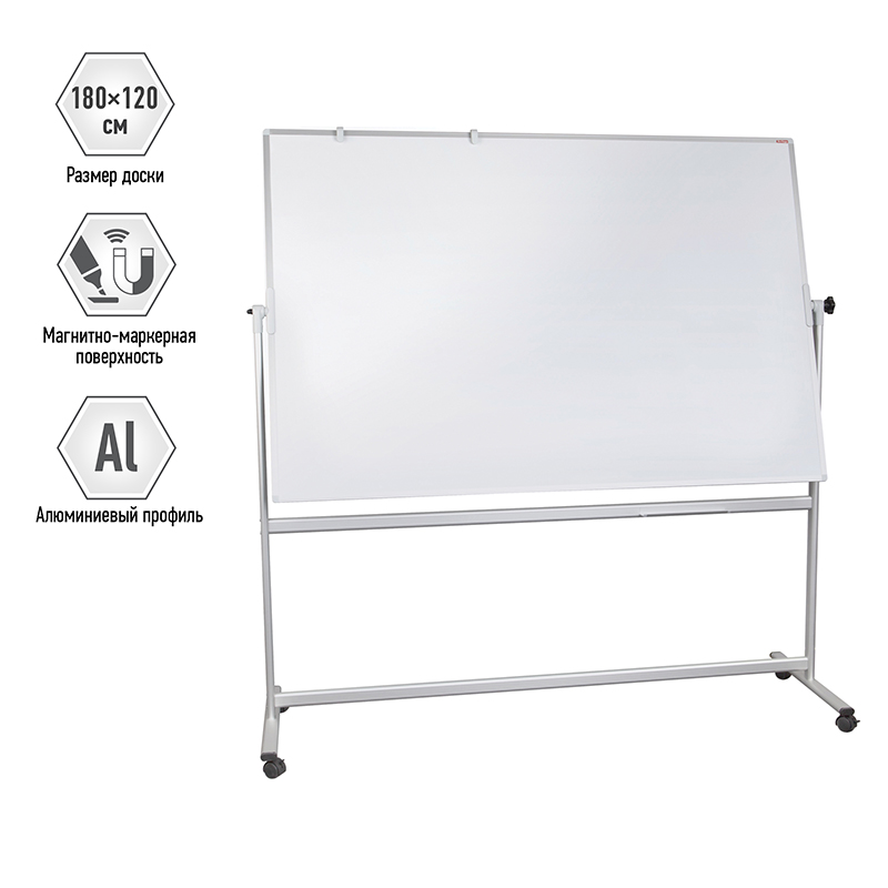 Доска магнитно-маркерная Berlingo "Premium", 120*180см, двусторонняя, поворотная, мобильная 300932