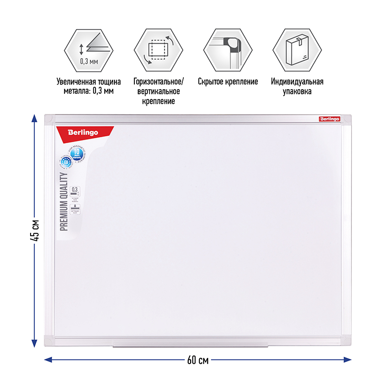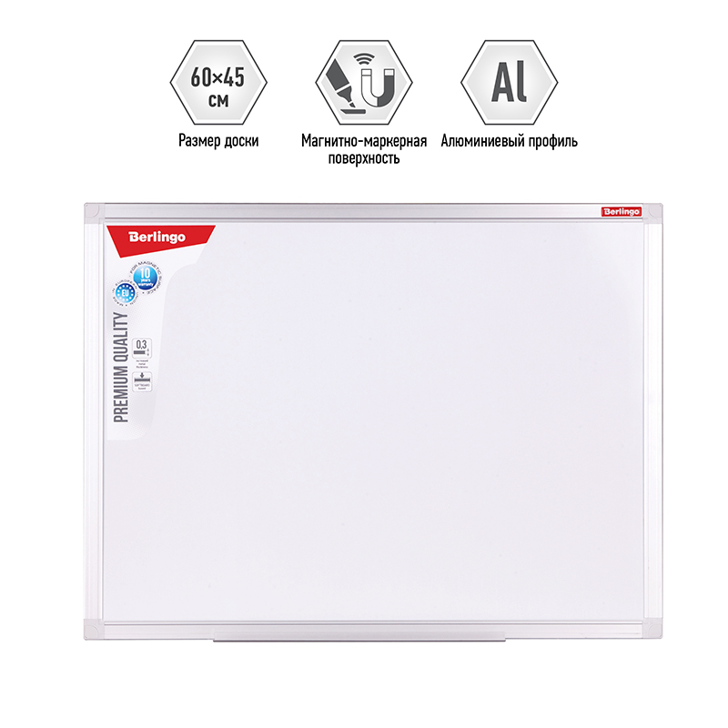Доска магнитно-маркерная Berlingo "Premium", 45*60см, алюминиевая рамка, полочка 199143