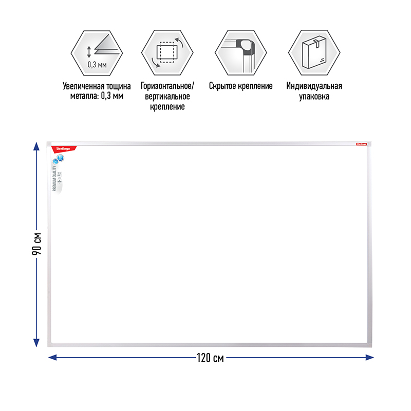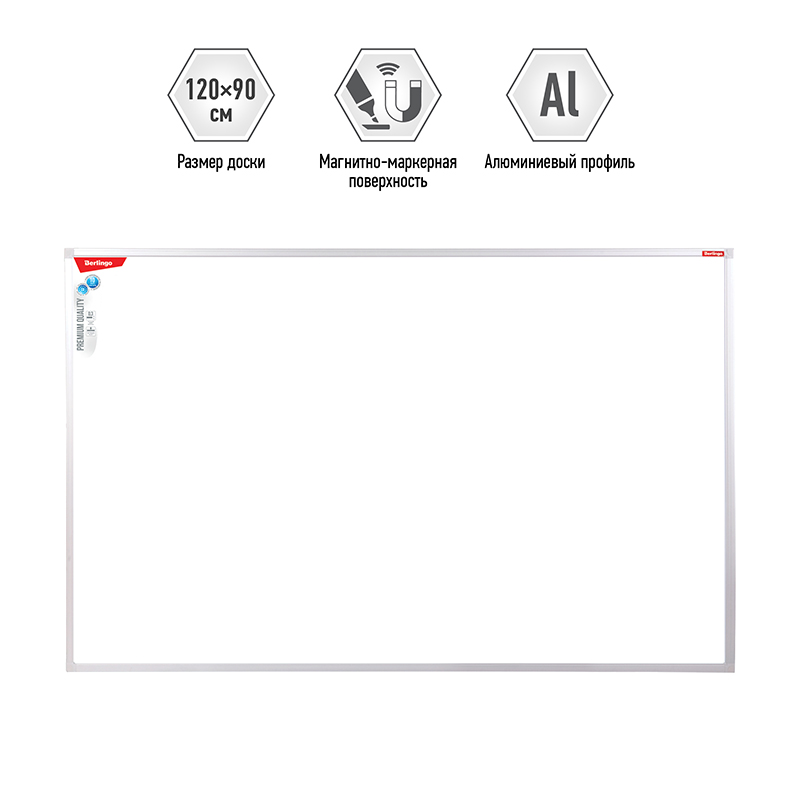 Доска магнитно-маркерная Berlingo "Premium", 90*120см, алюминиевая рамка, полочка 199145
