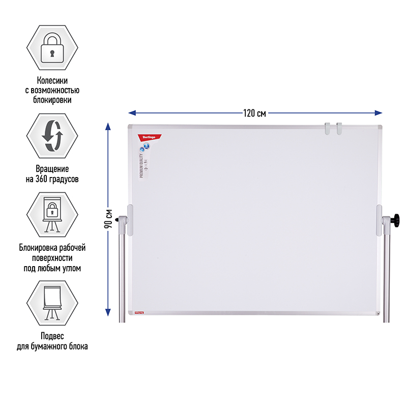 Доска магнитно-маркерная Berlingo "Premium", 90*120см, двусторонняя, поворотная, мобильная 256676