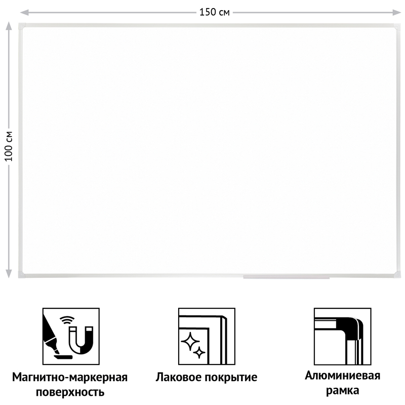 Доска магнитно-маркерная OfficeSpace, 100*150см, алюминиевая рамка, полочка, 333587