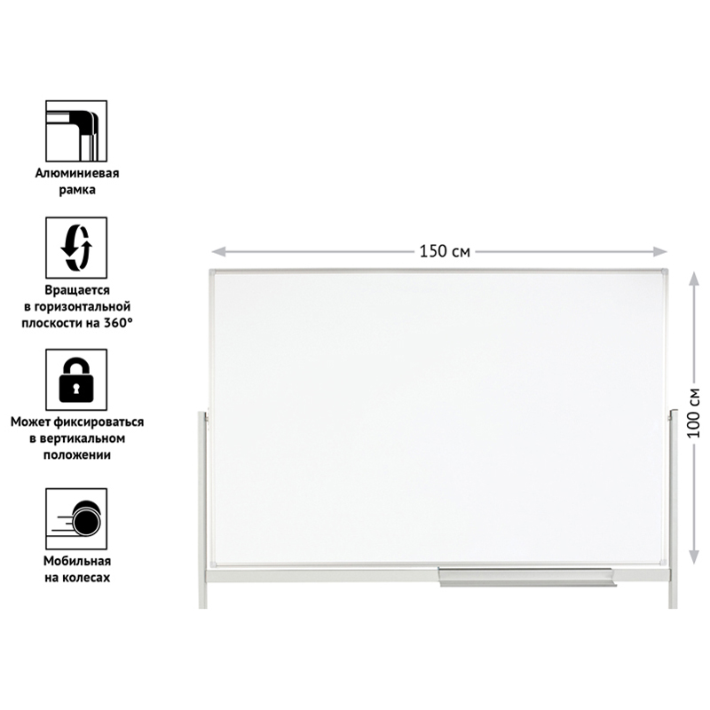 Доска магнитно-маркерная OfficeSpace, 100*150см, двусторонняя, поворотная, мобильная, алюминиевый профиль, фиксатор положения 292356